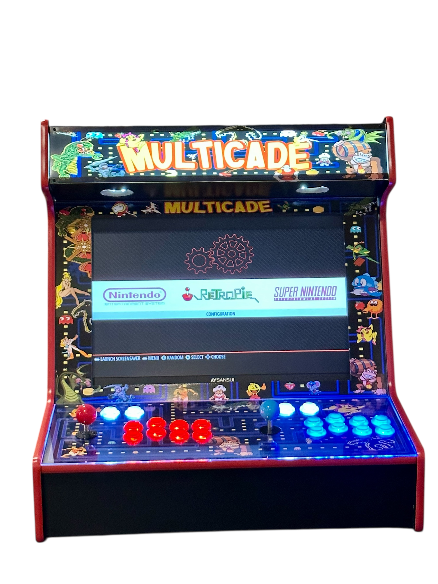 The Retro 2 Player Bartop Arcade delivers classic arcade style in a compact, space-saving design that’s perfect for countertops, bars, game rooms, or offices. Featuring a crisp 24″ high-definition display, it brings retro visuals to life with vibrant colors and smooth gameplay, while built-in stereo speakers provide clear, punchy sound without the need for external audio equipment. Designed for head-to-head fun, the two-player control layout uses arcade-grade joysticks and buttons for an authentic feel and reliable performance. Housed in a durable, professionally finished cabinet, this bartop arcade blends nostalgic design with modern hardware and convenience. Sold without games to comply with licensing requirements, it is fully compatible with third-party game systems or preloaded game cards, allowing you to customize your experience your way.