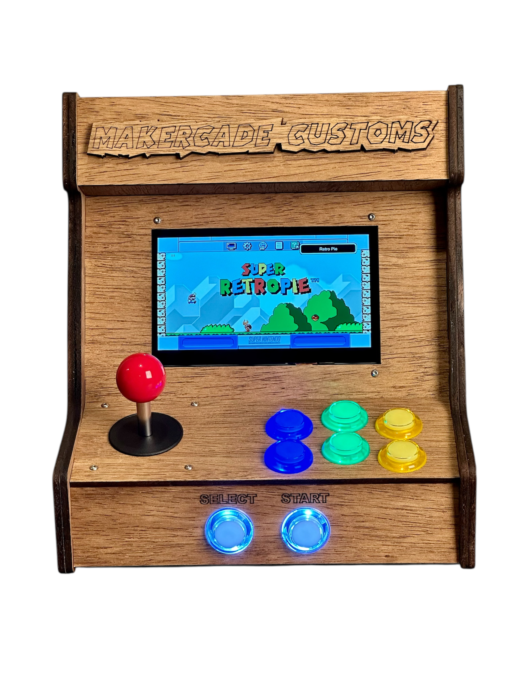 Bring classic arcade vibes to any desk or tabletop with this Mini Retro Tabletop Arcade Unit, designed specifically for Raspberry Pi–based builds. Crafted from 1/4″ sanded plywood, this compact cabinet delivers a clean, authentic look while remaining lightweight and easy to work with.